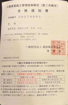 二級建築施工管理技術検定 合格!🌸
